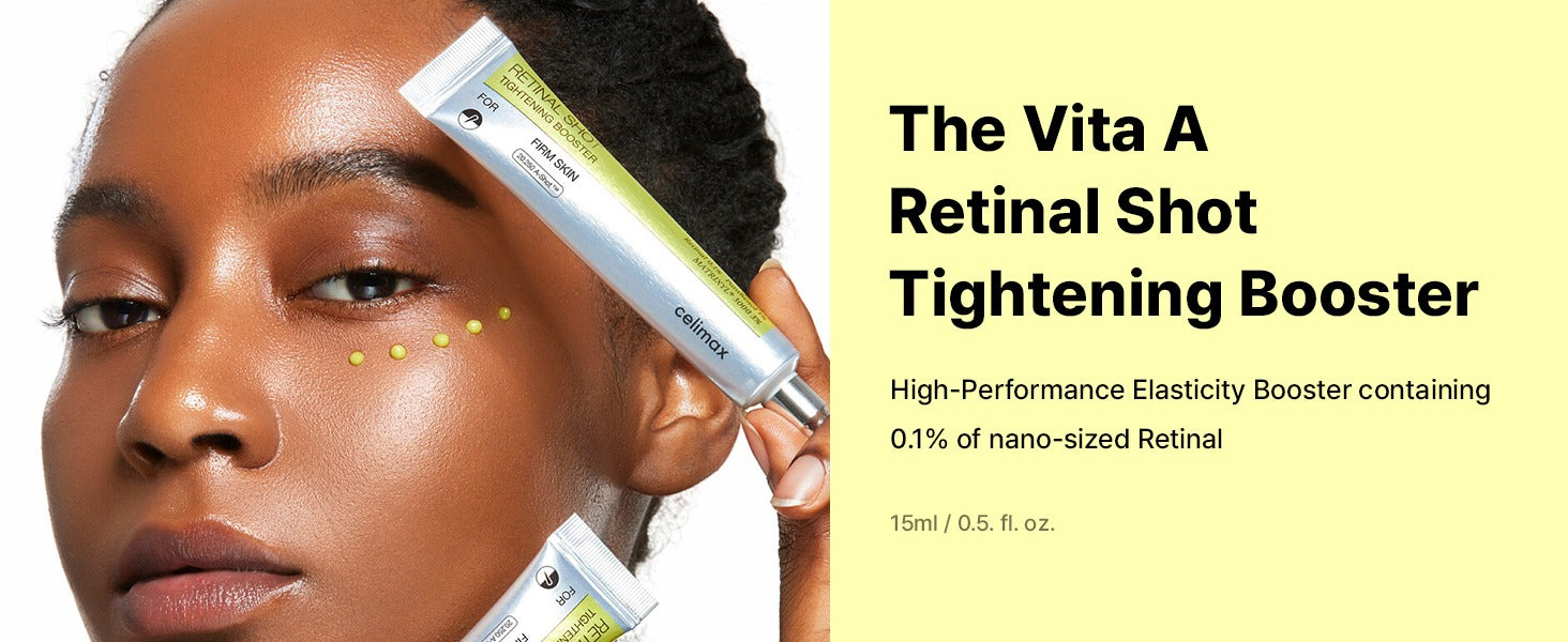 Celimax The Vita A Retinol Shot Tightening Booster is an innovative skincare product containing liposomized retinal and Matrixyl, designed to address skin concerns such as wrinkles, uneven texture, and enlarged pores. Combined with A-Shot™ technology, it enhances the delivery of these ingredients.