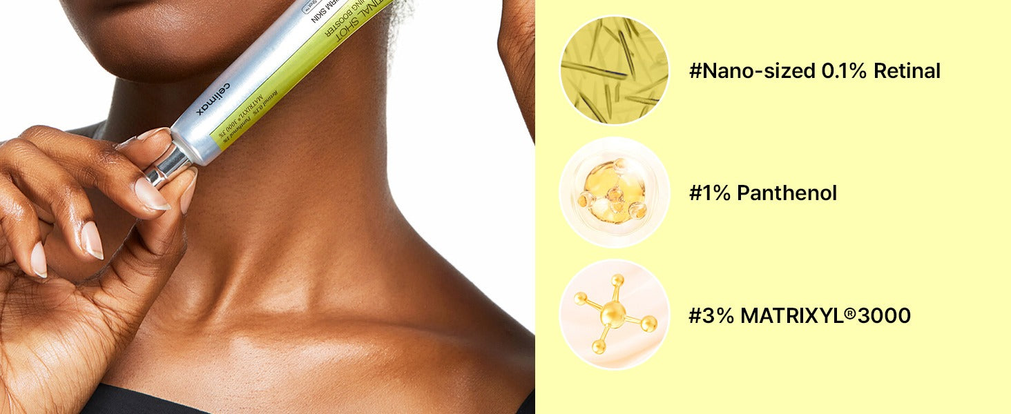 - Contains 0.1% liposomized retinal, 3% Matrixyl, 1% panthenol, and 20,250 A Shot™
