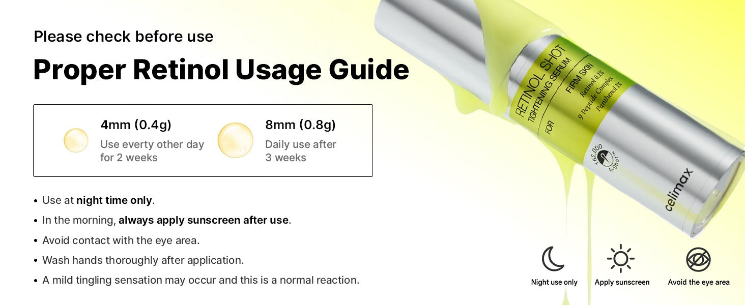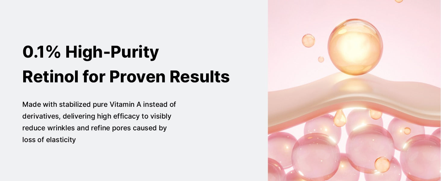 - Contains 0.1% pure retinol, 9-peptide complex, 1% panthenol, and 162,000 A-Shot™.